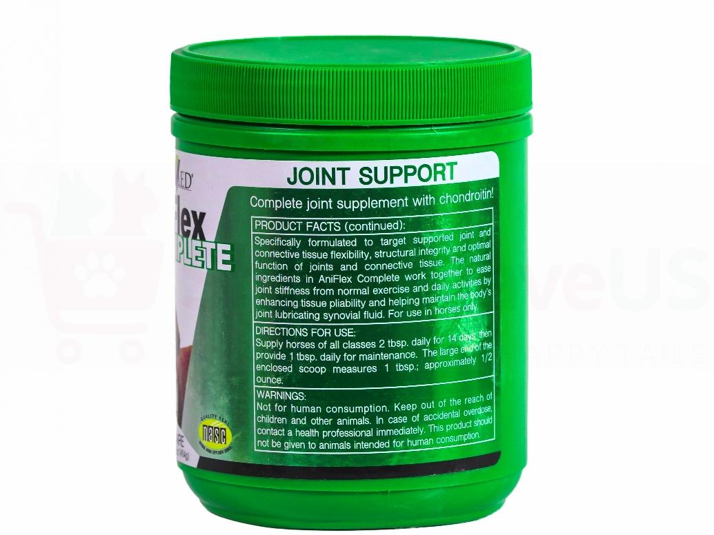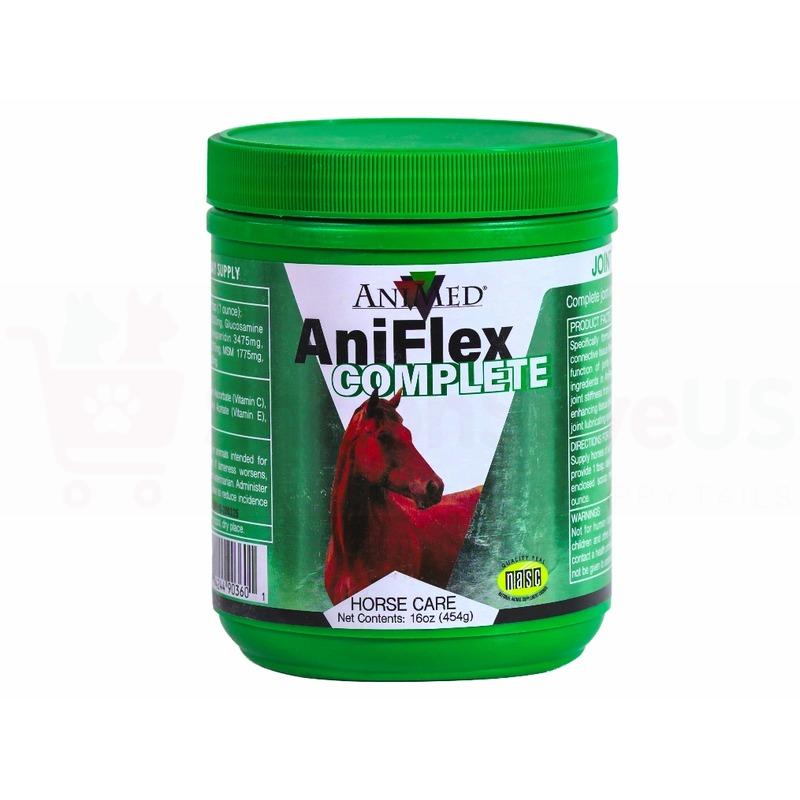 Durvet Animed AniFlex Complete is a joint supplement for horses, featuring a blend of glucosamine, chondroitin, hyaluronic acid, and MSM to support joint and connective tissue health. It also includes antioxidants to combat free radicals and creatine to promote healthy bone and joint structure. The unique, natural formulation is easily absorbed and helps maintain the health and resiliency of joints and connective tissues.