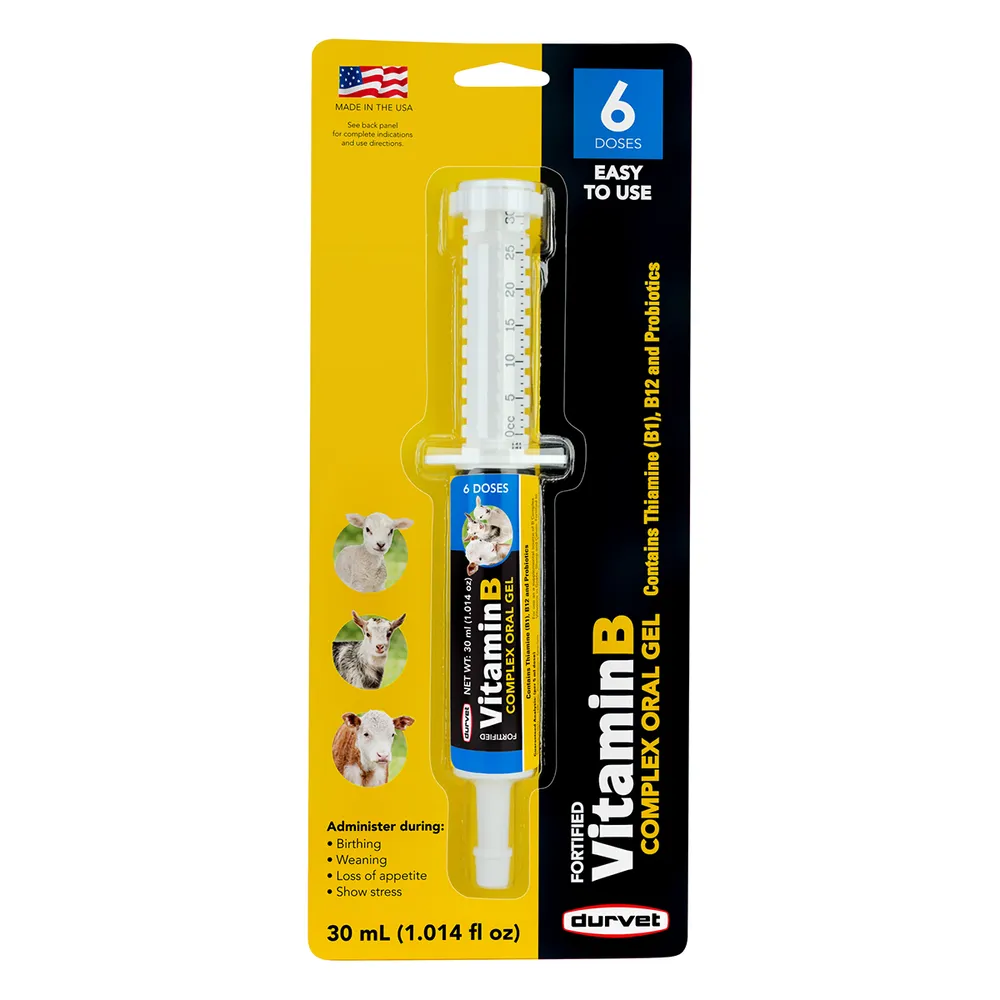 For use as a supplemental source of B Complex Vitamins in Goats, Sheep and Calves. General animal-care product.