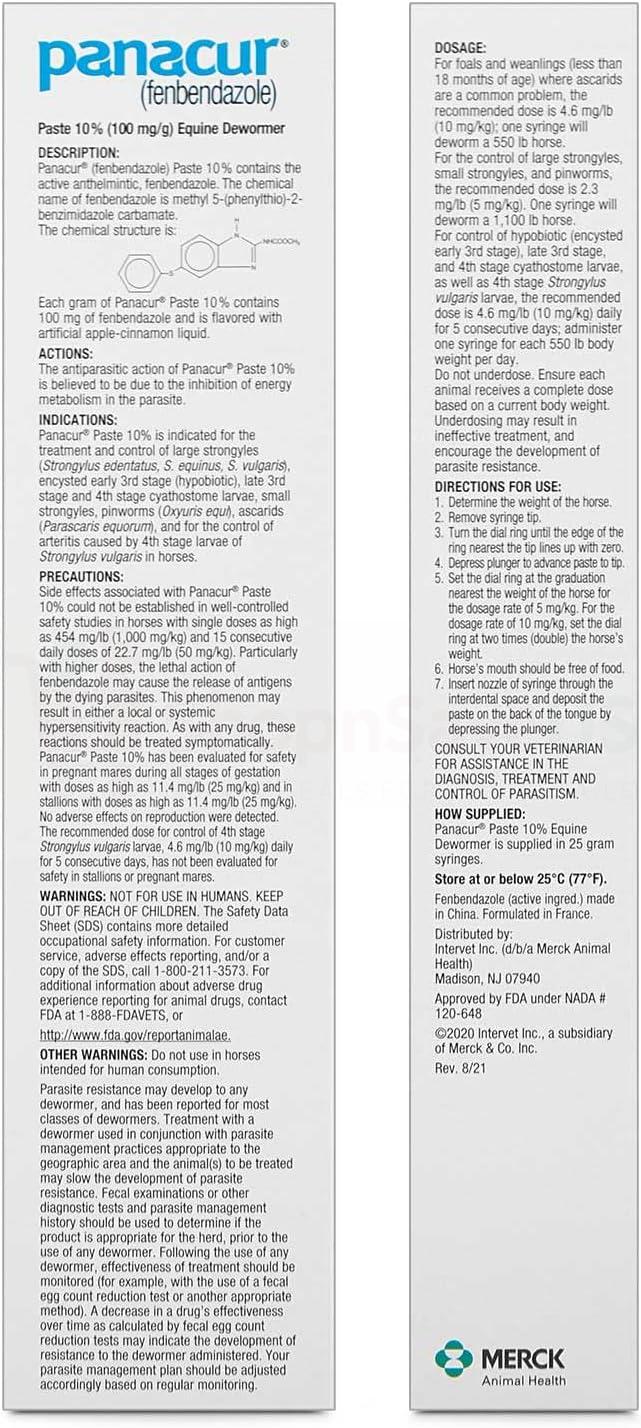 (3 Pack) PANACUR Dewormer HORSE PASTE 10%, 100mg each